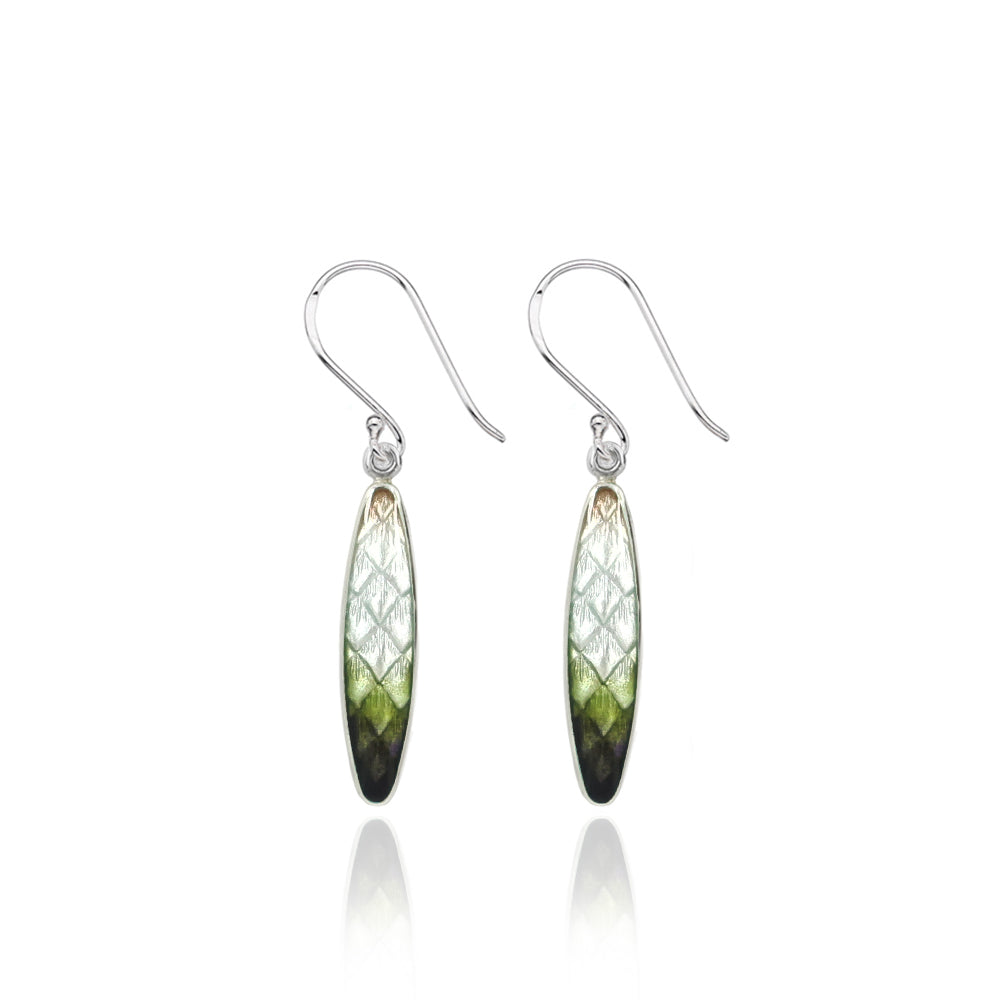 Enamelled Long Pinecone Moss Green Earrings Limited Edition