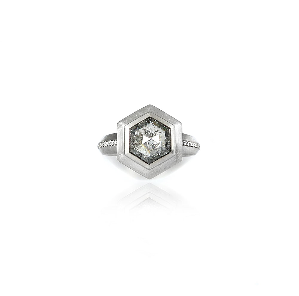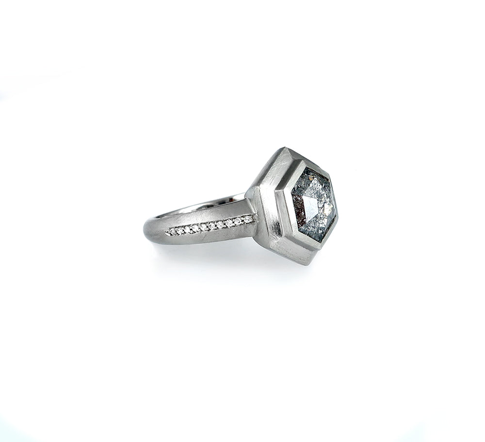 Hexagon Diamond Platinum Ring